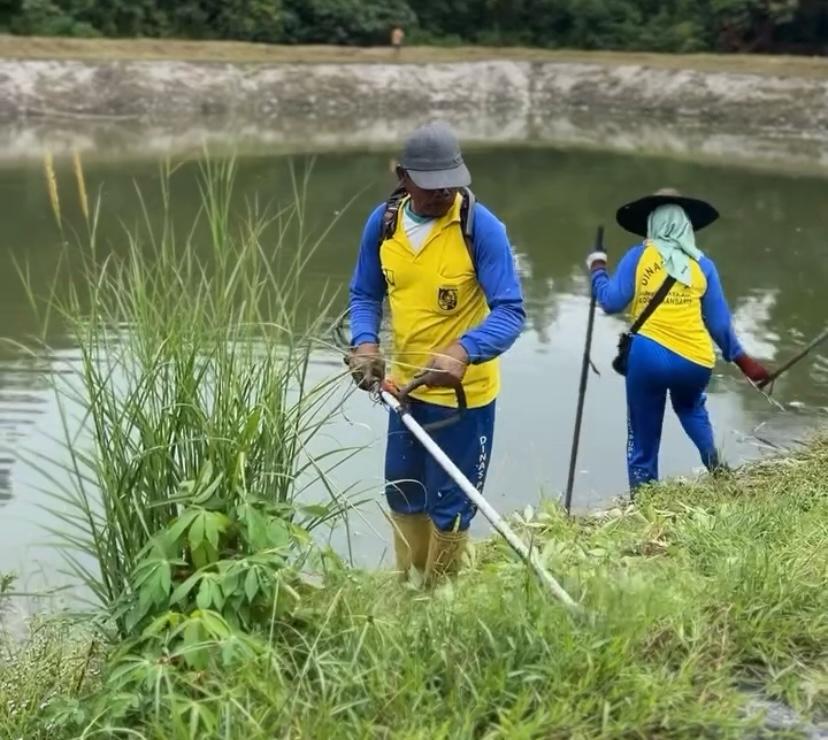 Pasukan kuning OP Dinas PUPR yang terlibat dalam kegiatan ini bekerja menyisir area sekitar waduk, membersihkan rumput yang tumbuh liar di sepanjang saluran air, serta mengangkat sampah yang menumpuk di dalam parit dan sungai kecil. Proses ini dilakukan untuk memastikan aliran air kembali normal dan mengurangi risiko penyumbatan yang dapat memicu genangan.